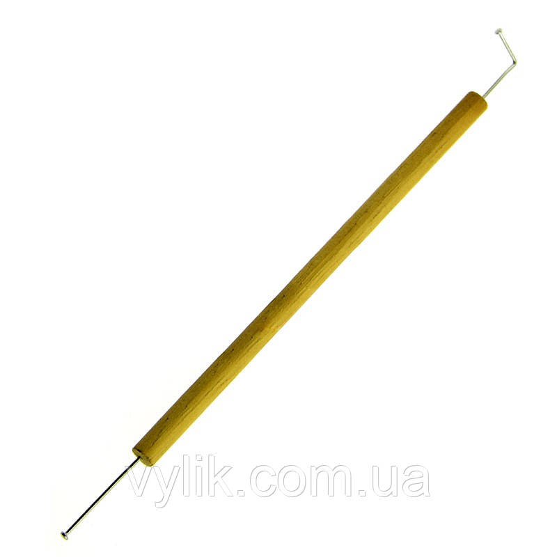 Шпатель завдовжки 132 мм. Ручка дерев'яна. З обох боків є металеві кінці — прямий і вигнутий. Прямий призначений для нанесення клею, вигнутий — для зняття та фіксування мітки на бджолиній матці.